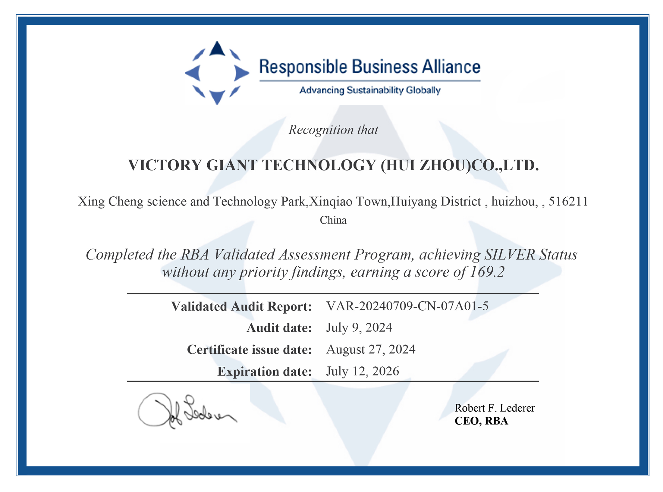 RBA VAP 사회적 책임 인증 자격증