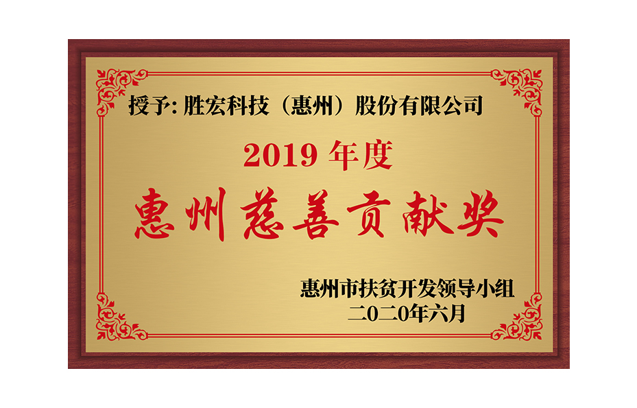 获得2019年惠州市慈善贡献奖